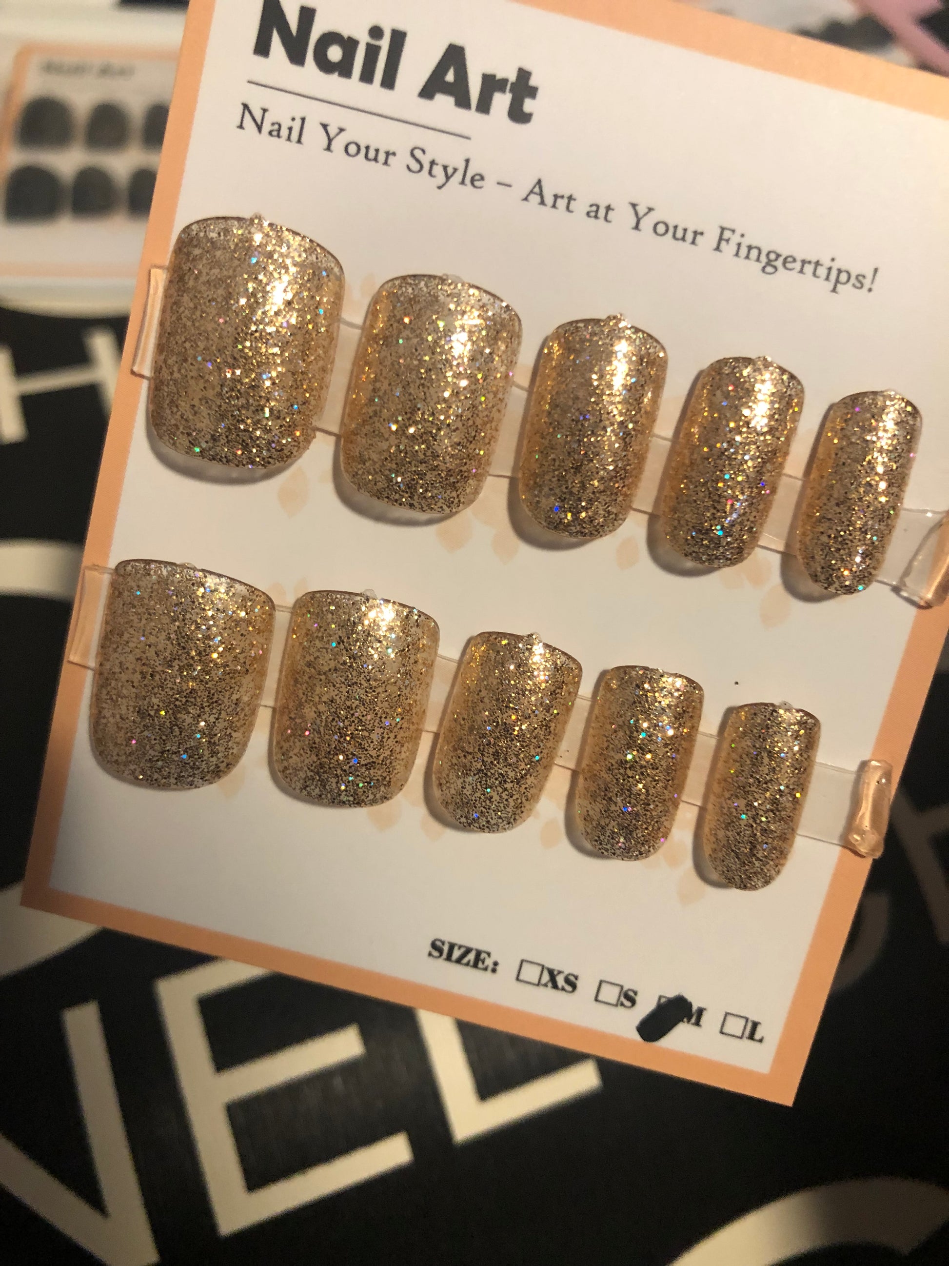Gold glittery short square nails