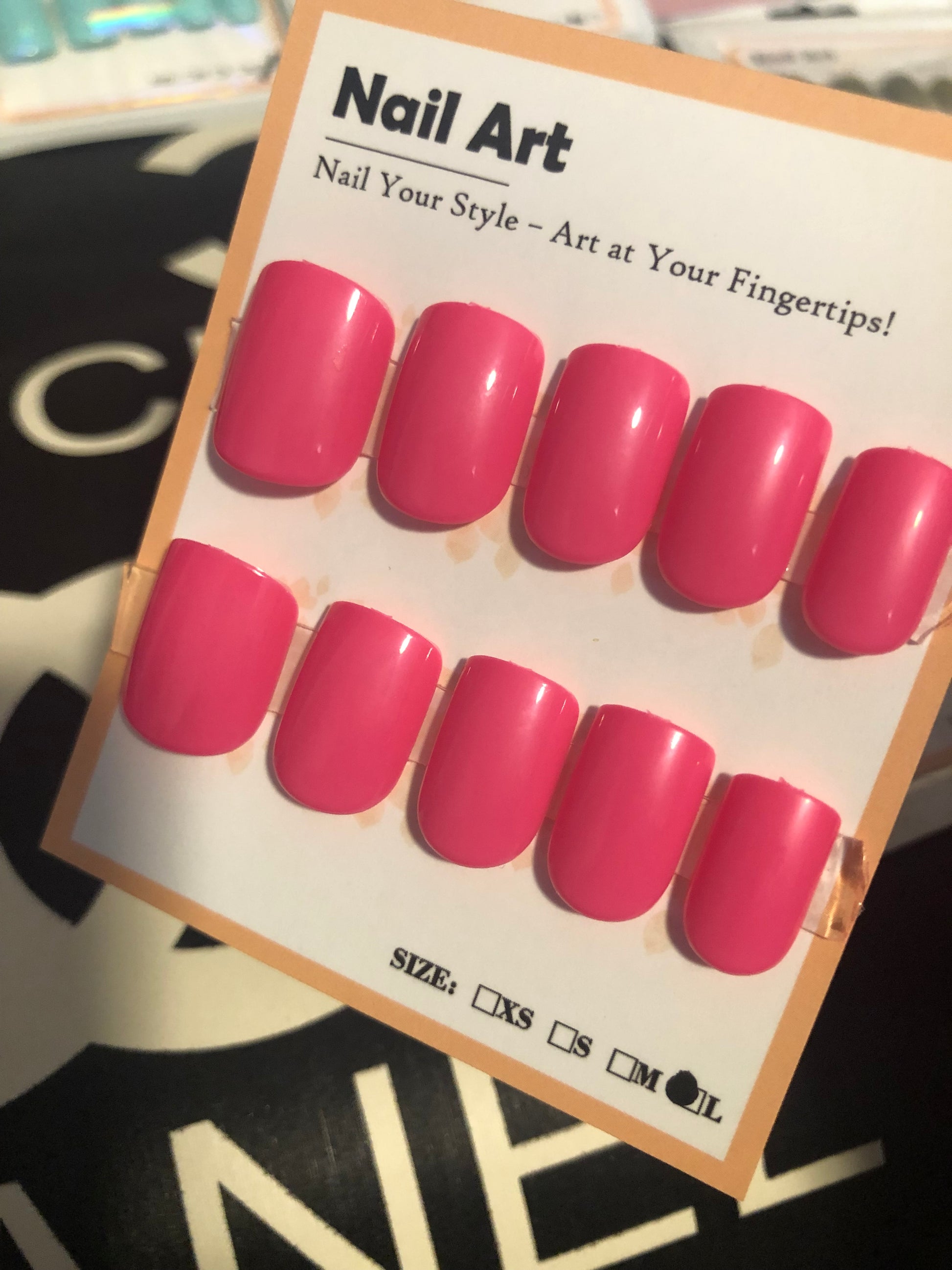 Hot pink short glossy square nails.